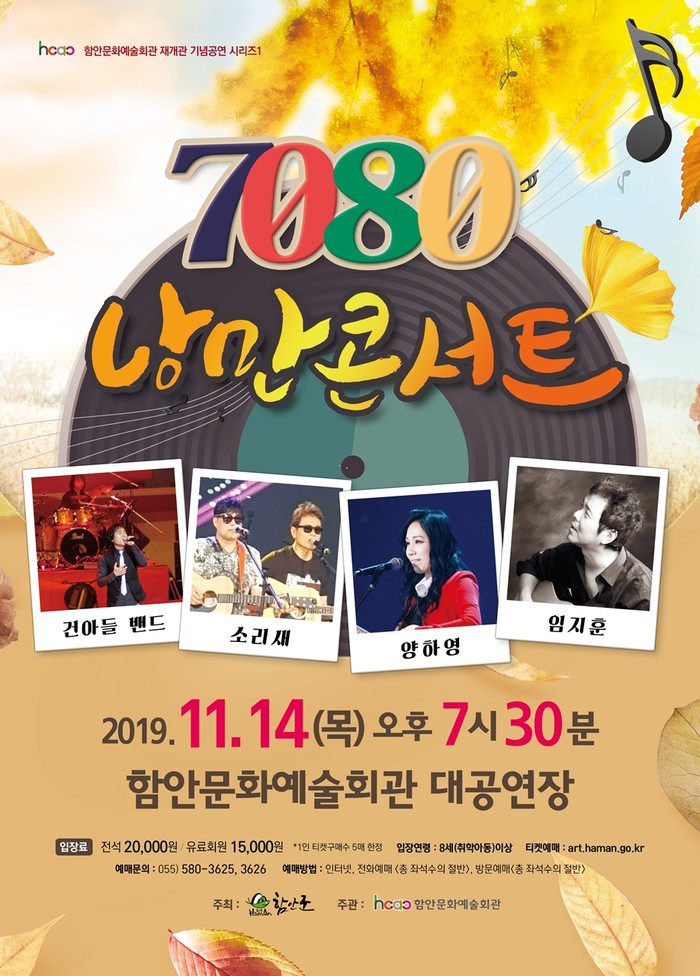 함안문화예술회관 대공연장에서 함안문화예술회관 재개관 기념공연 시리즈의 첫 번째로 ‘7080 낭만콘서트’ 공연이 펼쳐진다.