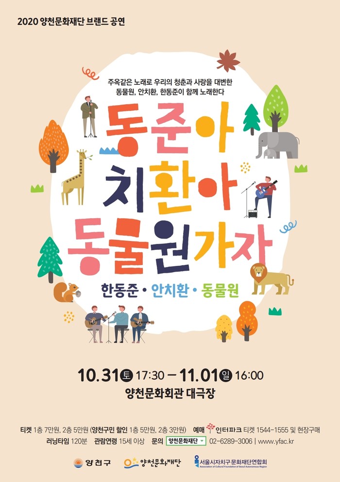 양천문화재단이 주최하고 대중음악의견가 서정민갑이 연출하는 조인트 콘서트 '동준아 치환아 동물원 가자'는 오는 31일과 11월1일 2회에 걸쳐 양천문화회관에서 펼쳐질 예정이다.