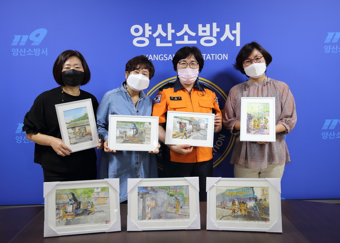 양산소방서(서장 박정미)는 3일 양산 어반스케치 동호회로부터 소방 활동 모습을 담은 미술작품 7점을 기증받았다고 밝혔다.