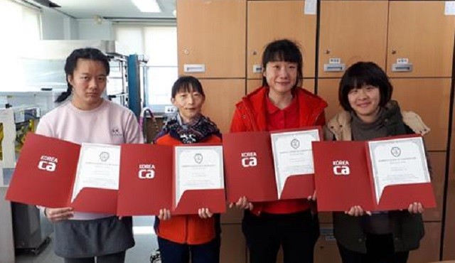 | 바리스타 3급 자격증을 취득한 해남군장애인종합복지관 직업재활교육생들 / 사진, 해남군장애인종합복지관 제공 |