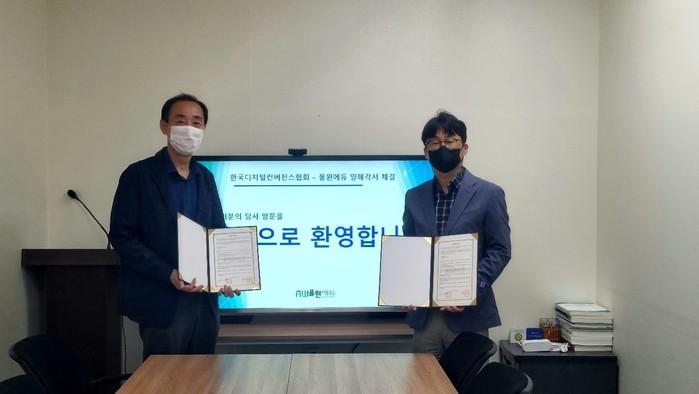 [시민일보 = 이승준](사)한국디지털컨버전스협회(대표 이근구)와 (주)올윈에듀(대표 김기상)가 국민내일배움카드제 인터넷원격훈련 사업 등을 위한 업무 협약을 지난 6월 30일 체결했다.