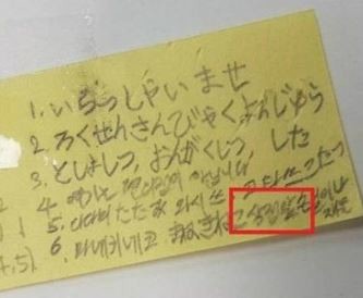 해당 사진은 경찰이 숙명여고 쌍둥이 자매 집에서 압수했던 포스트잇 메모로 밝혀졌으며, 보도에 따르면 2학년 1학기 기말고사 일본어시험 정답이 적힌 가운데 오른쪽 하단에 '상점 앞'이라는 정답이 보이며 의혹을 증폭시켰다.