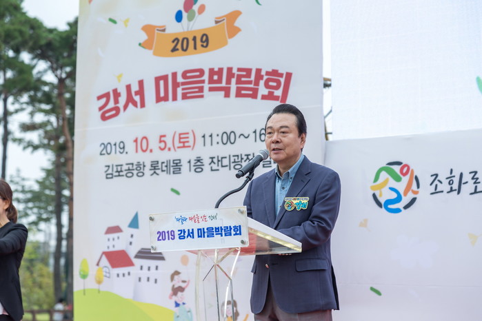 노현송 서울 강서구청장은 최근 김포공항 롯데몰 1층 잔디광장에서 열린 ‘강서 마을박람회’에 참석했다. 마을박람회는 ‘마을과 마음을 잇는 강서’라는 주제로 마을자치 협력기관들이 참석한 가운데 개최됐다. 사진은 노 구청장이 인사말을 하는 모습.(사진제공=강서구청)