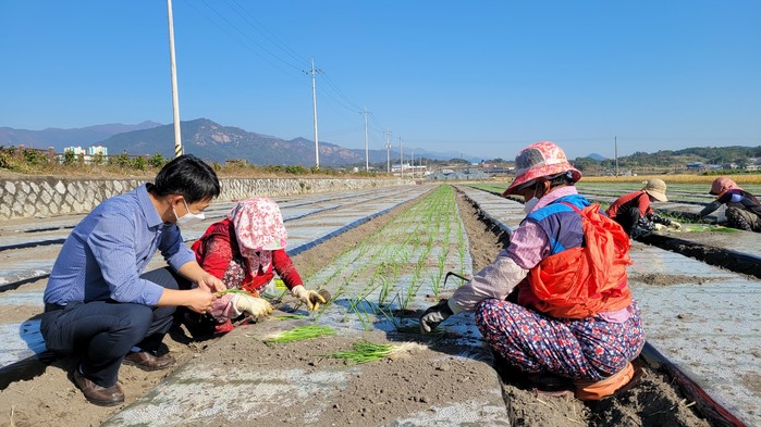 함양군은 본격적인 양파 정식 시기를 맞아 양파 묘 후기 관리와 본밭 토양 관리 등 고품질 양파 생산을 위한 적기정식 현장기술 지원에 나섰다.
