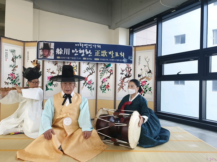 지난 12월 11일(금) 오후 4시, 함안군청 사거리 대박빌딩 2층에서 (사)대한시조협회 함안지회 주최, 주관으로 『여천(艅川) 안형환 정가(正歌) 발표회』를 가졌다.