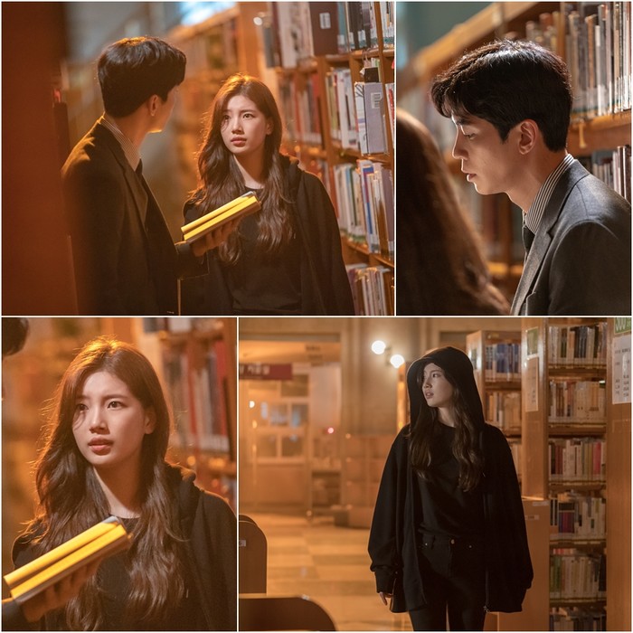 하지만 이후 배수지와 신성록이 어쩐지 차가운 분위기를 드러내며 조우한 ‘도서관 투샷’ 장면이 포착돼 궁금증을 돋우고 있다. 극중 고해리가 검은색 후드 짚업에 블랙진을 입은 편한 차림으로 불이 꺼진 도서관 내부에 나타난 상황.