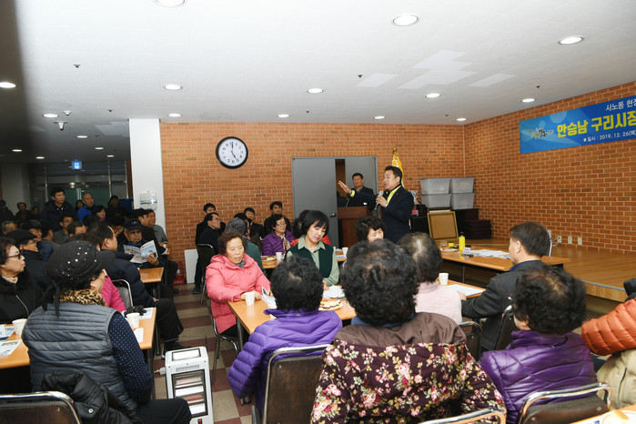 안승남 경기 구리시장은 26일 사노동 소재 에덴교회에서 사노동 현장 의견 청취를 위한 사노동 주민과 ‘시민 행복 간담회’를 개최했다. 사진은 안 시장이 주민들의 질문에 답변을 하고 있는 모습.(사진제공=구리시청)