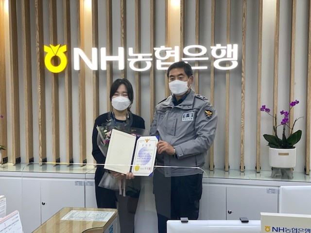 이번 감사장은 지난 2월 17일 해당 농협을 찾은 피해자가 은행 직원에게 1200만원을 인출 후 외화를 송금하기 위해 외화송금신청서를 작성하는 것을 유심히 보고 그동안 경찰관들이 홍보하였던 보이스피싱 의심 사례와 유사하여 은행 직원 이은경이 피해자에게 설명 및 설득 후 112로 신고하여 외화송금을 막았다.
