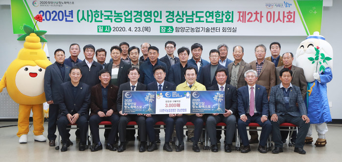 이날 (사)한국농업경영인 도 및 시·군 연합회 1,900매를 비롯해 함양군연합회 1,100매 등 3,000매의 함양산삼항노화엑스포 예매 입장권을 구매 약정하였다.