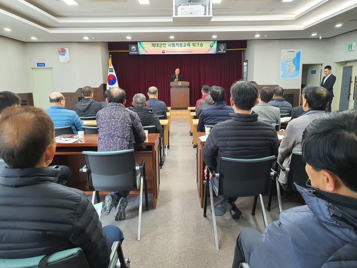 사회적응교육 워크숍은 제대군인이 기업ㆍ사회문화에 조기 적응할 수 있도록 변화 관리와 조직문화 적응력 향상을 지원하는데 목적이 있다. 1일차에는 △현장 선배.멘토와의 대화 △조직 내 의사소통 활성화 △리더의 역할과 조직관계에 대하여 교육하고, 2일차에는 △중장년일자리희망센터 소개 △전직을 위한 자기관리 △멘토 초청특강 △고용, 사회보장제도 안내를 진행한 후, 담당 상담사와의 맞춤형 상담이 이루어진다.