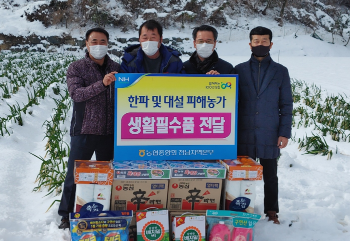 | ▲ 농협전남도지역본부, 한파 피해 점검 및 취약농가 생필품 지원(출처=농협전남지역본부) |