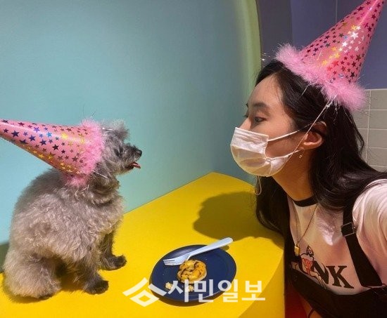 사진 속 유리는 배우 권혁수의 강아지 카페를 방문하여 반려견 두이와 함께 행복한 추억을 남기는 모습으로 훈훈함을 자아냈다.