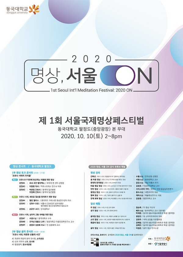 동국대학교(총장 윤성이)가 코로나19로 인한 우울감을 뜻하는 '코로나블루' 및 코로나극복을 위해 다채로운 방식의 명상 콘텐츠를 활용한 '제1회 서울국제명상페스티벌'을 진행한다고 밝혔다.