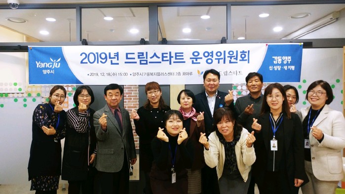 경기 양주시는 최근 양주고용복지+센터 2층 꿈마루에서 ‘2019년 양주시 드림스타트 운영위원회’를 개최했다. 이날 회의에는 민간 전문위원들과 아동통합사례관리사, 관계공무원 등 12명이 참석해 2019년 사업성과와 오는 2020년 운영계획 보고, 분야별 사업추진 방안 등에 대해 논의했다. 사진은 회의에 참여한 관계자들이 기념촬영을 하는 모습.(사진제공=양주시청)