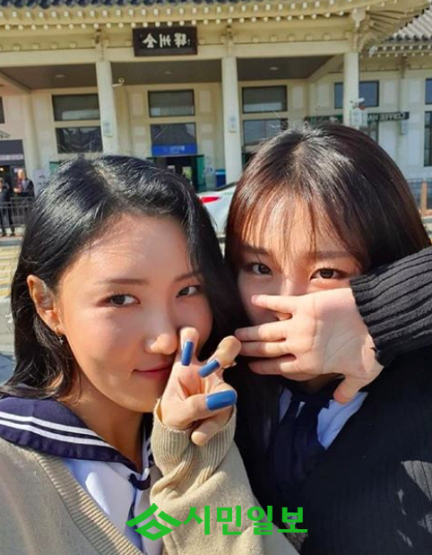 공개된 사진을 보면, 중학교 때 입었던 교복을 입고 있는 화사와 휘인의 모습이 담겨 있다.
