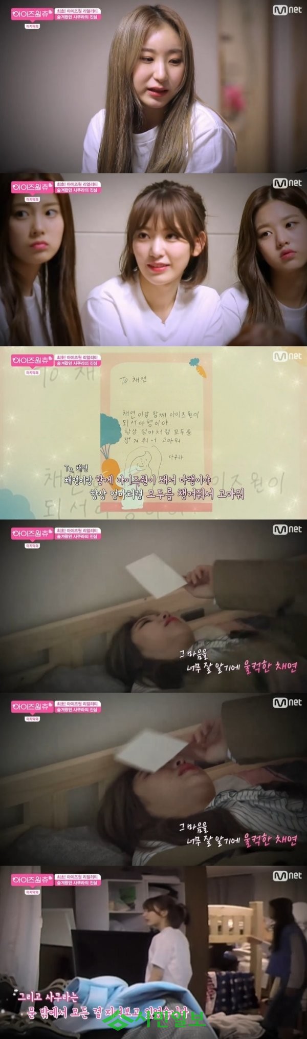 이후 이채연은 숙소 침대에서 미야와키 사쿠라가 남긴 편지를 읽었다. 서툰 한국어 실력에도 불구하고 써내려간 편지에는 “같이 아이즈원이 되어 다행이야, 항상 엄마처럼 챙겨줘서 고마워”라고 적혀 있었다.