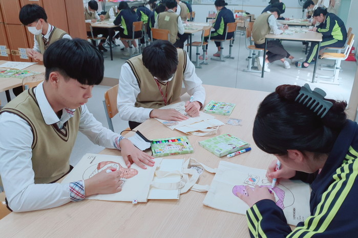 또한, 한국사와 미술 수업시간에 독도 사랑에 대한 융합 수업을 실시하고 있다. 한국사 시간에는 '역사 속 독도'를 주제로 모둠수업을 실시하여 역사적 근거를 바탕으로 독도가 우리 땅인 이유를 정리하고 발표하며, 미술 시간에는 '독도'를 주제로 다양한 작품(텀블러, 에코백, 무드등)을 제작하고 있다.