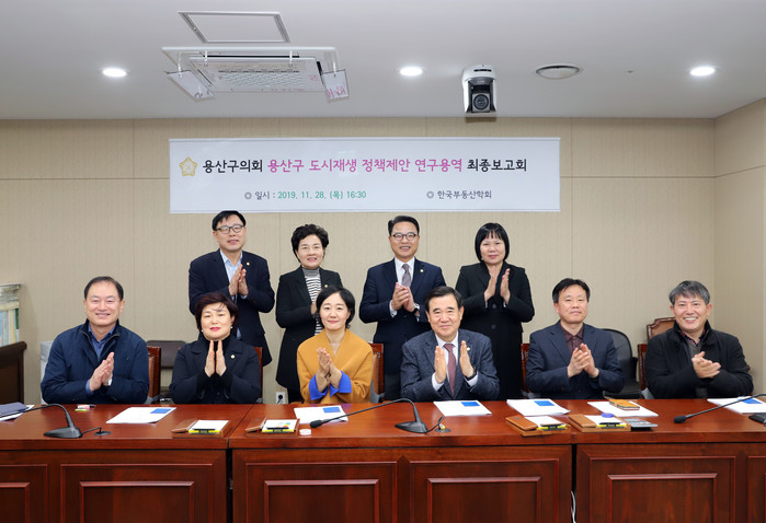 이어 김정재 의장은 "이번 연구용역을 통해 용산구의 도시재생사업 정책방향에 대해 다시 한번 생각해보는 좋은 계기가 됐고 이번 연구성과를 잘 활용해 용산구민이 살기좋은 행복한 도시로 거듭날 수 있도록 최선을 다하겠다"고 말했다.