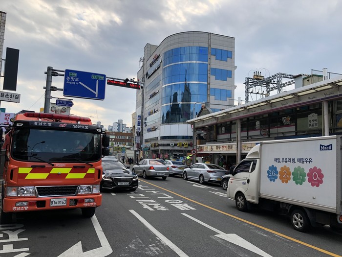 | ▲ 양산소방서, 소방출동로 확보 훈련 사진 |