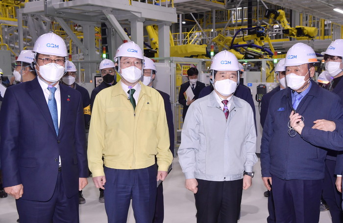 [광주=정찬남 기자] 정세균 국무총리는 10일 오후, 전국 최초의 상생형 지역일자리인 광주글로벌모터스 현장을 국무조정실 국무2차장, 고용노동부 노동정책실장, 광주광역시장 등과 동행 방문했다.