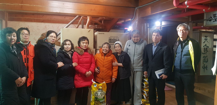 서울 도봉구 방학2동은 최근 주민자치회 임원들과 함께 지역내 '요셉의 집'에 백미 10kg, 10포와 노인 위생용품(성인기저귀 40팩, 패드 40팩, 물티슈 4상자) 등을 전달했다. 사진은 동 관계자들이 주민자치회 임원들과 함께 기념촬영을 하는 모습.(사진제공=도봉구청)
