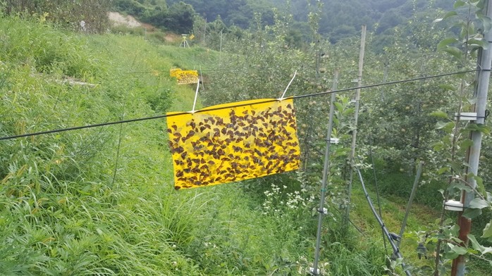 군 관계자는 “끈끈이트랩은 돌발해충의 과원유입을 방지하고 예찰도 겸할 수 있어 발생 밀도 감소에 효과적이고, 농가에서 화학적 방제와 물리적 방제를 병행 추진하여 철저한 병해충 관리를 당부드린다”고 말했다.