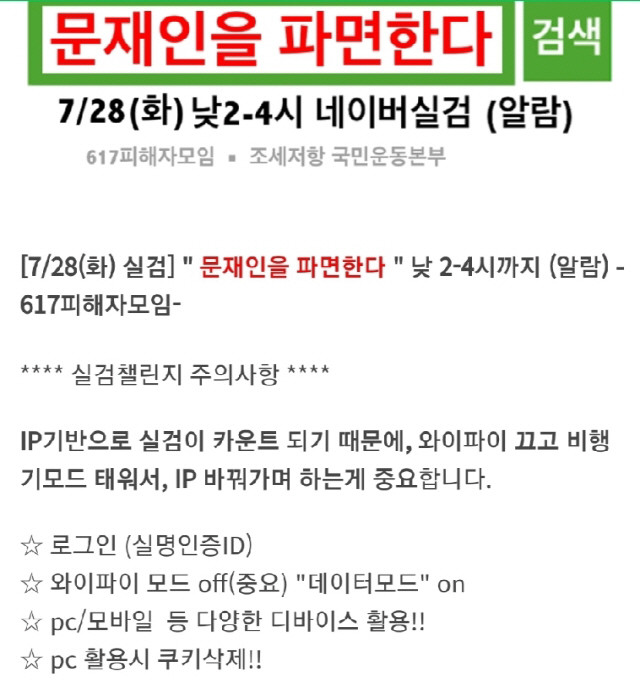 '문재인을 파면한다'는 3040 누리꾼들이 포털을 통해 최근 조세 저항 운동 및 주식 양도세 도입 정책에 대한 비판의 목소리를 드러낸 것.
