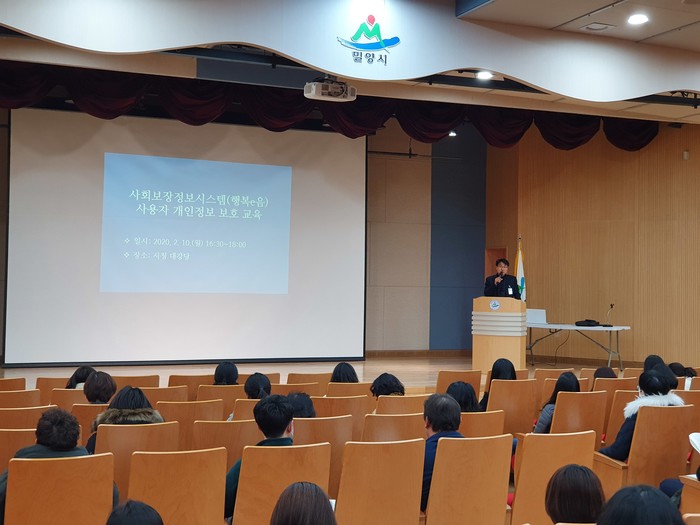 이 날 교육은 개인정보보호 인식 제고를 위해 실시되었으며, 2020년 사회보장정보시스템 개인정보보호지침과 개인정보보호 위반 사례 설명을 중심으로 진행되었다.