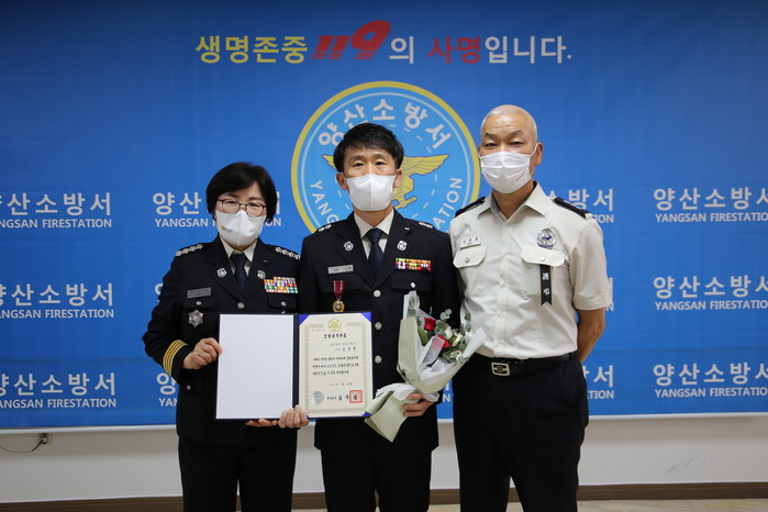 양산소방서(서장 박정미)는 2021년 상반기 모범공무원으로 선정된 손정원 소방경에게 국무총리 표창을 수상했다고 6일 밝혔다.