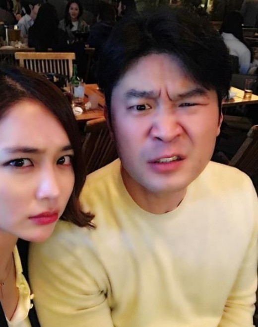 사진 속 이민정과 최자는 포즈를 취하고 있다. 두 사람 다 빨개진 얼굴로 웃음을 자아낸다.
