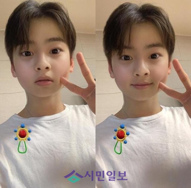 사진 속 차은우는 브이 포즈를 하며 셀카를 찍고 있다. 차은우는 빵빵한 볼을 자랑하며 귀여움을 뽐냈다. 차은우는 어플 변신에도 불구하고 ‘얼굴 천재’ 답게 뛰어난 미모를 자랑했다.