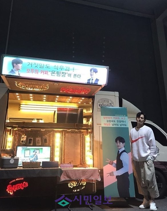 공개된 사진 속 온주완은 편안한 차림으로 커피차 배너 옆에 선 모습. 훈훈한 미소로 포즈를 취하고 있다. 커피차 플래카드엔 '거짓말도 식후경! 모두의 커피 '온팀장'이 쏜다', '영민이가 커피도 쏘고 상훈이도 찾을테니 의심은 넣어둬 넣어둬'라는 팬들의 응원 문구가 적혀 있다.
