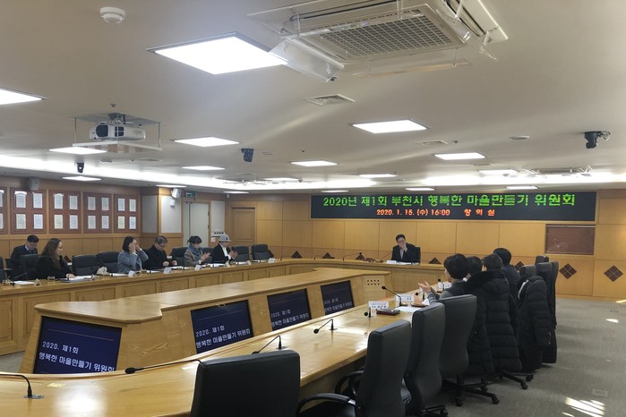 경기 부천시는 최근 시청 창의실에서 ‘2020년 제1회 부천시 행복한마을만들기 위원회’를 개최했다. 행복한마을만들기 위원회는 행복한 마을 만들기 정책 및 사업을 심의·자문하는 역할을 하고 있다. 사진은 회의를 하고 있는 모습.(사진제공=부천시청)