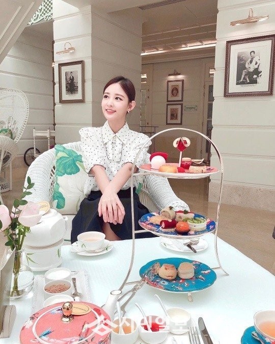 박유라는 자신의 인스타그램에 "여행의 마지막 일정은 #AuthorsLounge #애프터눈티 #만다린오리엔탈 호텔 안에 있는 곳인데, 여기에 와보고 싶어서 겸사겸사 룸을 예약했어요 딱 사진으로 봤던 것처럼 화사하고 샤랄라한 느낌"이라는 글과 함께 한 장의 사진을 게재했다.