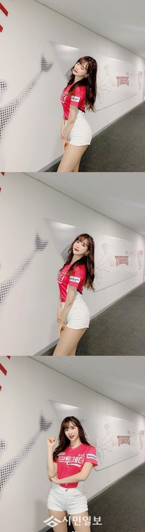 사진에는 김한나 치어리더가 광주 기아 챔피언스 필드 대기실에서 늘씬한 몸매와 함께 개미 허리를 과시해 남심을 사로잡았다.