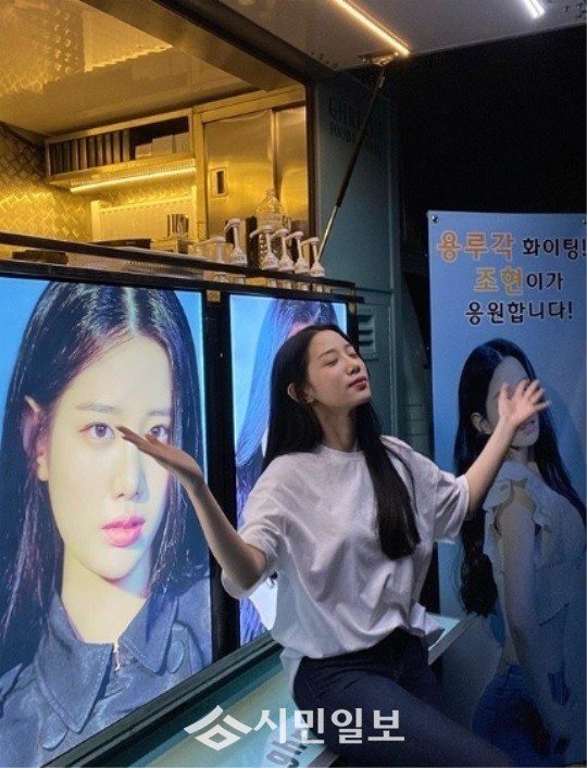 조현은 자신의 인스타그램을 통해 "힘내자 힘 #용루각 #예주 #화이팅"이라는 글과 함께 사진을 게재했다.