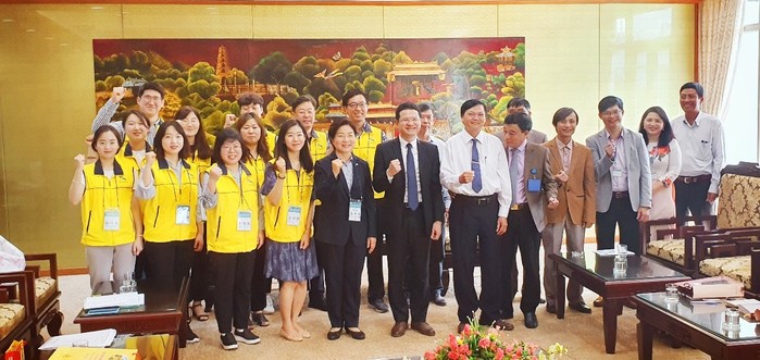 서울 은평구(구청장 김미경) 공무원 봉사단이 최근 베트남 중부지역 트언티엔후에성의 성도인 후에시를 방문해 도시간 우호 증진을 위한 교류 활동 및 베트남 취약계층에 대한 봉사활동을 했다. 사진은 김미경 구청장(앞줄 왼쪽에서 다섯 번째)과 봉사단이 후에시 관계자들과 기념촬영을 하고 있는 모습.(사진제공=은평구청)
