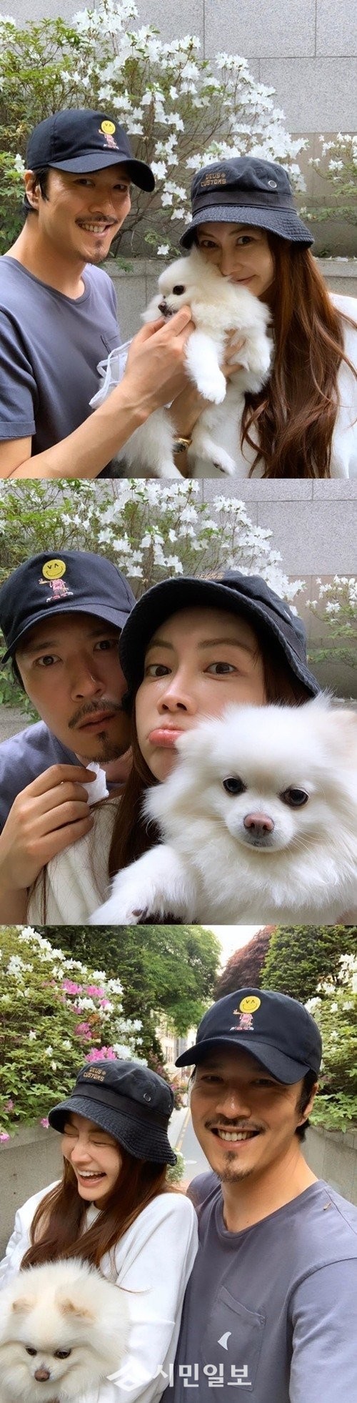 배우 양미라는 자신의 인스타그램을 통해 "오빠랑 솜이랑 동네 딱 한바퀴! 집앞에만 나가도 너무 좋다 #부부스타그램 #가족사진"이라는 글과 함께 사진 세 장을 게재했다.