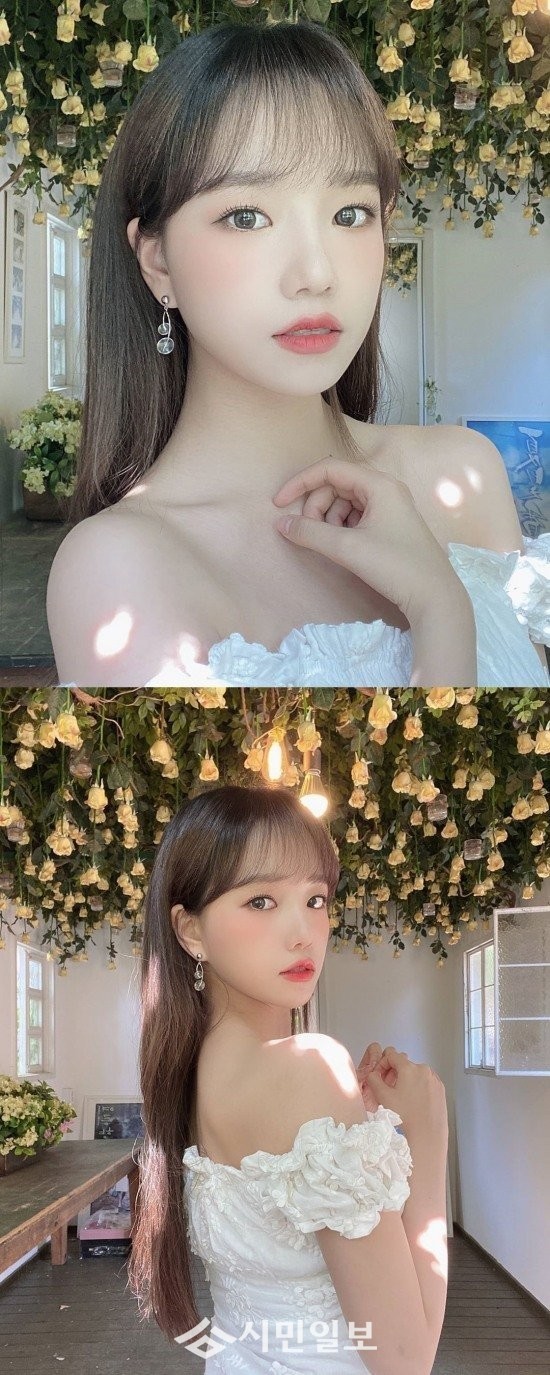 사진 속에서 유리는 오프숄더의 화이트 드레스를 입고 우아한 미모와 함께 청순한 아우라를 드러내 팬심을 사로잡았다.