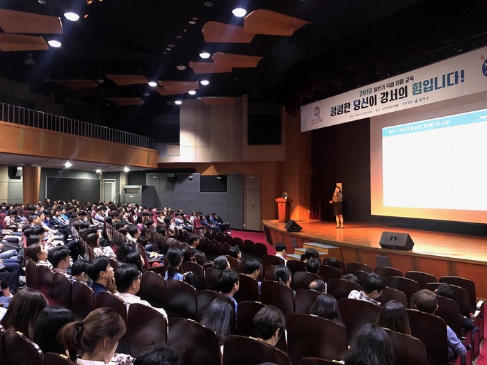 서울 강서구는 최근 강서구민회관에서 전직원을 대상으로 공직자로서의 올바른 가치관을 재정립하고 구민에게 신뢰받는 청렴한 조직문화 조성을 위해 ‘2019년 하반기 청렴 특별교육’을 실시했다. 사진은 직원들이 교육을 받고 있는 모습.(사진제공=강서구청)