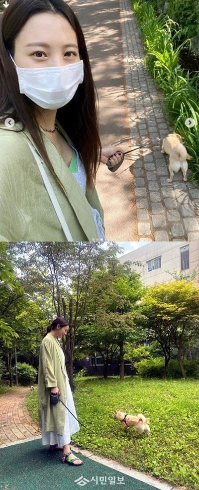 공개된 사진 속 수현은 반려견을 데리고 산책길에서 우아한 아우라와 함께 여신 미모를 드러내 감탄을 자아냈다.