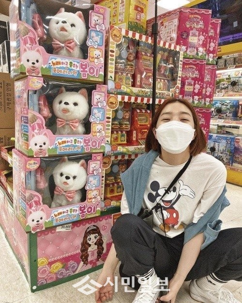 이번에 공개된 사진에는 마트 장난감 코너 앞에서 반려견과 같은 이름의 장난감을 만나 신난 듯 인증샷을 남기고 있는 신다은의 모습이 담겨 웃음을 자아냈다.