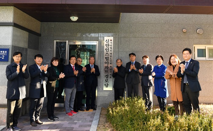 경기 하남시가 최근 미사강변 신안인스빌 경로당 개소식을 개최했다. 이날 행사에는 김상호 시장을 비롯해 김선배 대한노인회 하남시지회장, 방미숙 의장과 주민 50여명 등이 참석했다. 사진은 김 시장(오른쪽에서 다섯 번째)과 관계자들의 기념촬영 모습. (사진제공=하남시청)