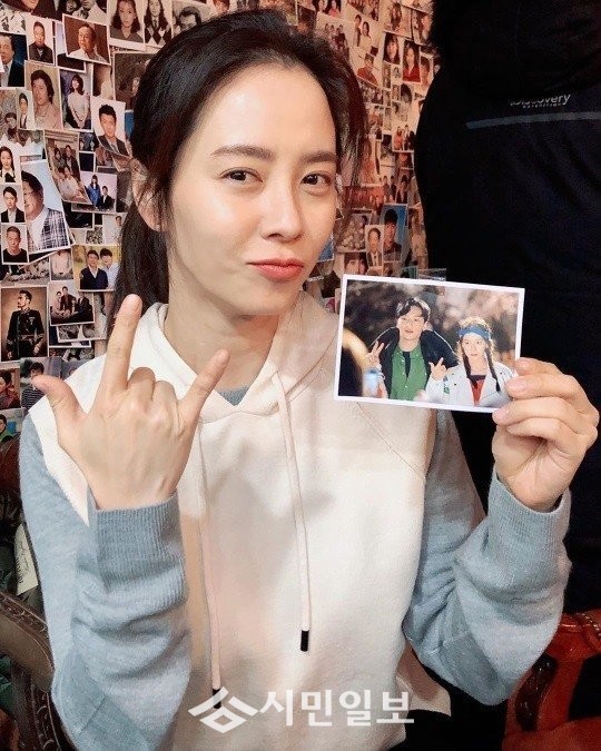 공개된 사진 속에는 송지효가 화사한 미모를 뽐내며 5년전 촬영했던 드라마 '구여친클럽' 촬영 당시 찍었던 사진을 든 채 똑같은 포즈를 취하고 있는 모습이 담겨 감탄을 자아냈다.