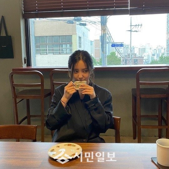 공개된 사진 속 효민은 여유롭게 커피를 마시며 화사한 미모와 상큼한 아우라를 드러내 감탄을 자아냈다.