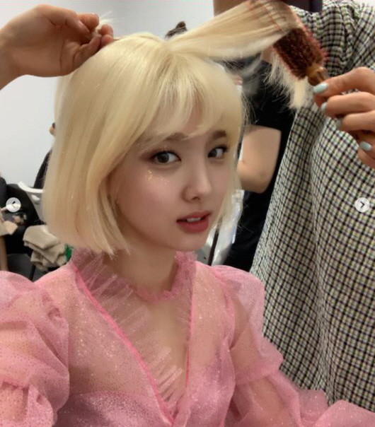 사진 속 나연은 금발로 변신해 있다. 단발 가발을 쓰고 깜찍한 미모를 뽐내고 있는 것. 평소 나연의 스타일과는 사뭇 다른 헤어 스타일이 경쾌한 에너지를 내뿜어내고 있다. 나연의 언제나 사랑스러운 비주얼은 '원스'들의 월요병을 없애기에 충분해 보인다.