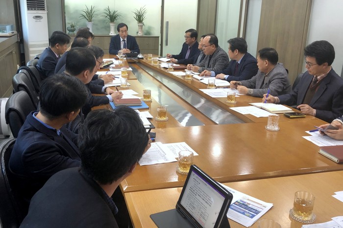 서울 서대문구가 20일 구청 회의실에서 문석진 구청장 주재로 코로나19(우한폐렴) 확산에 따른 긴급대책회의를 열었다. 이날 문 구청장은 직원들에게 빈틈없는 방역과 선별진료소 운영은 물론 지역경제 활성화를 위한 지원에 매진할 것을 주문했다. 사진은 회의 진행 모습. (사진제공=서대문구청)