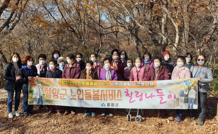 경남 함양군 노인맞춤돌봄서비스는 사회관계 향상 프로그램으로 독거어르신 250명을 대상으로 11일부터 20일까지 상림공원, 남계서원, 함양목재문화체험관, 논개묘, 선비문화탐방로, 농월정 등 지역의 명승지를 방문하는 나들이 체험활동을 제공하였다.