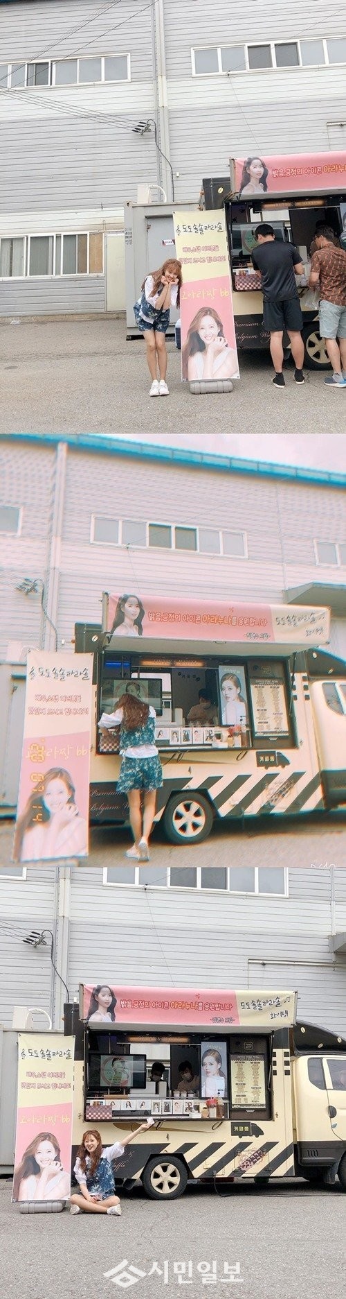 사진 속 고아라는 김명수가 KBS 2TV 새 드라마 '도도솔솔라라솔' 촬영장에 응원차 보내준 커피차 앞에서 눈부신 미모와 함께 화사한 아우라를 드러내 감탄을 자아냈다.