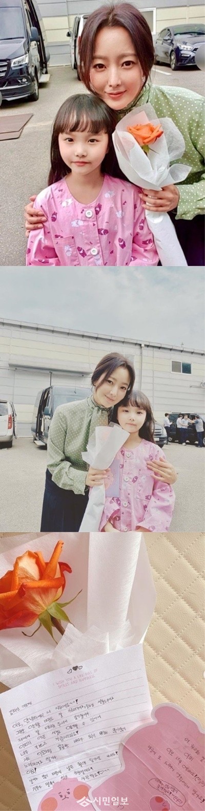 공개된 사진 속 김희선은 아역 배우 지유 양이 선물한 손편지와 꽃을 직접 인증하며 화기애애한 모습을 드러내 훈훈함을 자아냈다.